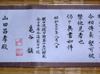 当流には古来より正式な「介錯の太刀」および「試し斬り」の免許が伝承されています。